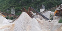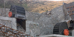 大塊的原料經(jīng)由原料倉進(jìn)入振動(dòng)給料機(jī),使物料以均勻的速度到達(dá)破碎腔內(nèi)部進(jìn)行破碎,破碎后的物料經(jīng)過圓振動(dòng)篩進(jìn)行篩分,滿足粒度的物料被輸送至成品料堆,不滿足粒度的物料經(jīng)皮帶輸送機(jī)運(yùn)輸?shù)蕉壠扑闄C(jī)進(jìn)行再次破碎,達(dá)到規(guī)格粒度物料被運(yùn)往成品料堆。