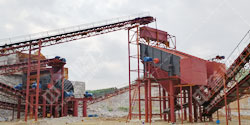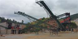 石料生產(chǎn)線在工作過程中,大塊石料經(jīng)料倉由振動給料機均勻地送進重型錘式破碎機進行粗碎,粗碎后的石料由皮帶輸送機送入錘式破碎機(或反擊式破碎機)進行中碎,中碎后的石料由膠帶輸送機送進振動篩進行篩分,符合規(guī)格的石料和成品砂子(篩下物)由膠帶輸送機送至成品料堆;不符合規(guī)格的大顆粒石料(篩上物)由皮帶輸送機返回至錘式破碎機再次進行破碎處理,破碎后的石料再經(jīng)過膠帶輸送機送進振動篩進行篩分,這樣形成閉路多次循環(huán)。