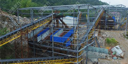 從工藝流程圖可以看到,時(shí)產(chǎn)600噸的中小型砂石骨料生產(chǎn)線不像大型、大型的生產(chǎn)線那種復(fù)雜曲折,這個(gè)工藝流程圖比較通俗易懂,一目了然。原料倉的物料進(jìn)過振動給料機(jī)進(jìn)入破碎機(jī)破碎腔內(nèi)進(jìn)行破碎的工作,破碎的物料經(jīng)過兩臺振動篩的同時(shí)篩分,一部分物料經(jīng)過篩分得到顆粒粒度合適的成品料,另一部分物料直接進(jìn)入二級破碎機(jī)破碎腔內(nèi)部進(jìn)行再次破碎,然后再經(jīng)過不同直徑規(guī)格的振動篩進(jìn)行篩分,再次獲得不同顆粒粒度的成品料。