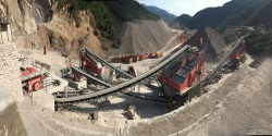 如圖所示,該碎石生產(chǎn)線總體上來說分為兩部分,一部分出普通成品料,一部分出砂石料,由PCZ1820錘式破碎機(jī)直接破碎以后篩分出來的料就是普通成品料,不滿足成品料粒度要求的物料被輸送到PC1220整形機(jī)中進(jìn)行進(jìn)一步加工以后篩分出來的成品料是砂石料,能滿足用戶的不同需求。