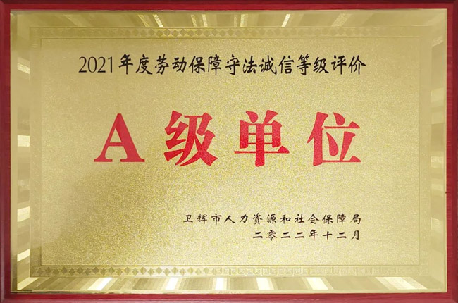 獲評(píng)“2021年度勞動(dòng)保障守法誠信A級(jí)用人單位”