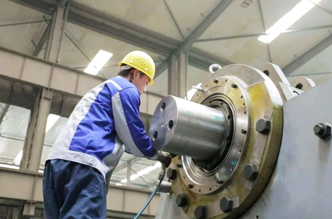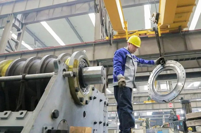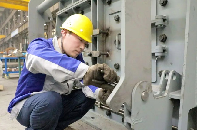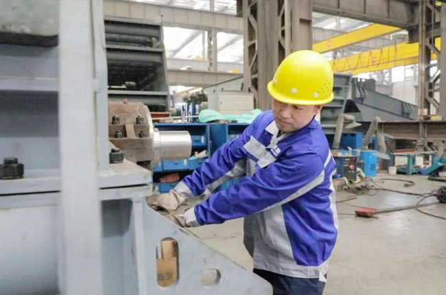 采訪第一事業(yè)部成裝組裝配員工馮浩然的時(shí)候,他正在裝配一臺(tái)即將發(fā)貨的DLEV125顎式破碎機(jī),從液壓充氣到壓蓋組裝,安裝30個(gè)螺絲,只需短短2-3分鐘的時(shí)間。用尺子測量軸承間距,進(jìn)行反復(fù)對(duì)比,裝配完成后,對(duì)零件的相互位置、配合間隙、松緊情況等進(jìn)行調(diào)整,然后再進(jìn)行面的精度檢驗(yàn),后進(jìn)行試運(yùn)行,面檢查機(jī)器運(yùn)轉(zhuǎn)的靈活性、密封性、轉(zhuǎn)速、功率等各項(xiàng)功能。