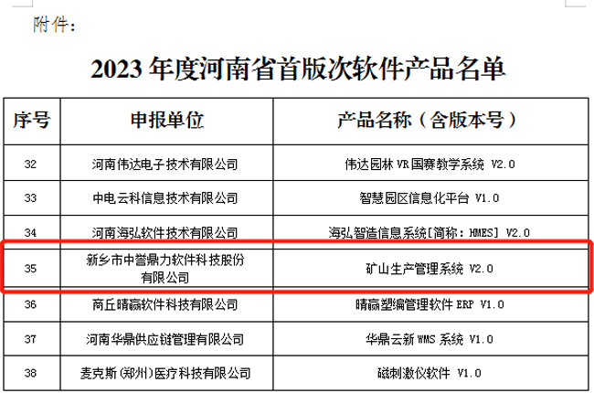 7月20日-26日,河南省工業(yè)和信息化廳對(duì)2023年度河南省首版次軟件產(chǎn)品認(rèn)定結(jié)果進(jìn)行公示,新鄉(xiāng)市中譽(yù)鼎力軟件科技股份有限公司創(chuàng)新研發(fā)的“礦山生產(chǎn)管理系統(tǒng) V2.0”順利通過認(rèn)定!