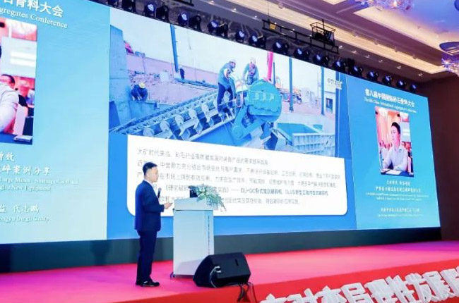 大礦時代來臨,砂石行業(yè)高質量發(fā)展對裝備產品的要求也越來越高!12月7日上午,在適用技術和裝備論壇,中譽鼎力營銷總監(jiān)代志鵬以《大礦時代 降本增效 中譽鼎力新設備軟硬巖破碎案例分享》為主題,向與會代表介紹了中譽鼎力近年來結合市場變化與客戶需求,不斷進行設備創(chuàng)新、工藝創(chuàng)新、應用創(chuàng)新,推出了DLHGC 臥式旋回破碎機和DLVSI 立軸沖擊式破碎機等破碎新品,并在市場上得到成功應用,力求在生產效率、節(jié)能減排、運營維護等方面,為更多用戶解決難題,創(chuàng)造更大價值。