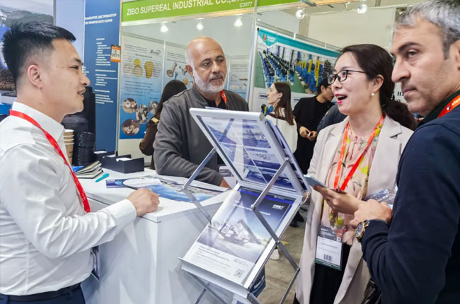 布展期間,中譽(yù)鼎力營銷總監(jiān)代志鵬、山東-東北大區(qū)經(jīng)理李觀本耐心介紹業(yè)務(wù)、解答咨詢,并與眾多觀展者就礦山裝備性能技術(shù)創(chuàng)新、產(chǎn)業(yè)未來發(fā)展趨勢等話題展開了深入的探討和交流。