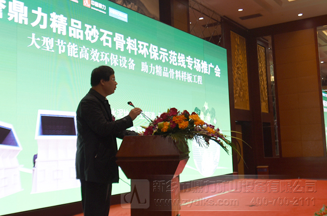 中譽(yù)鼎力副總經(jīng)理就我們公司目前在建的河北白沙時產(chǎn)3000噸骨料生產(chǎn)線進(jìn)行詳細(xì)闡述,從設(shè)備配置、中控系統(tǒng)、環(huán)保設(shè)計等多個方面介紹此條生產(chǎn)線的之處。其中就選用了我們公司時產(chǎn)量的設(shè)備PCZ2125破碎機(jī),并且采用DCS控制系統(tǒng)及自動裝車系統(tǒng),預(yù)計該項目將于2016年6月份投入生產(chǎn),屆時將再次邀請各位導(dǎo),嘉賓前往參觀。
