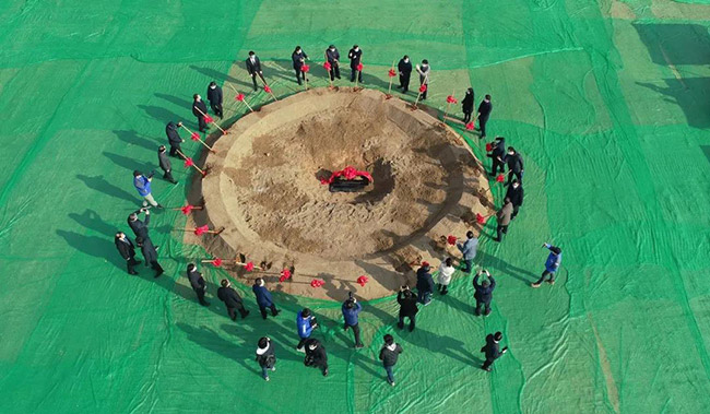 出席儀式的體導(dǎo)為項(xiàng)目培土奠基