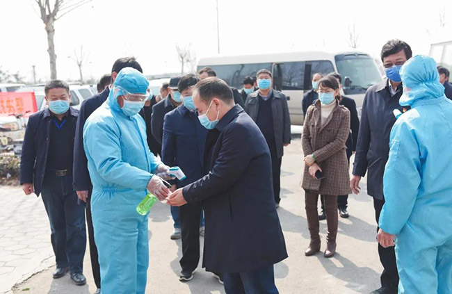 衛(wèi)輝市市長(zhǎng)范士富、衛(wèi)輝市常務(wù)副市長(zhǎng)李志勇、副市長(zhǎng)董岐山等導(dǎo)程陪同指導(dǎo)調(diào)研。中譽(yù)鼎力董事長(zhǎng)張治民詳細(xì)匯報(bào)了中譽(yù)鼎力的疫情防控工作和復(fù)工復(fù)產(chǎn)情況。