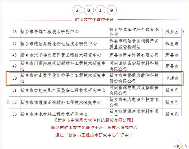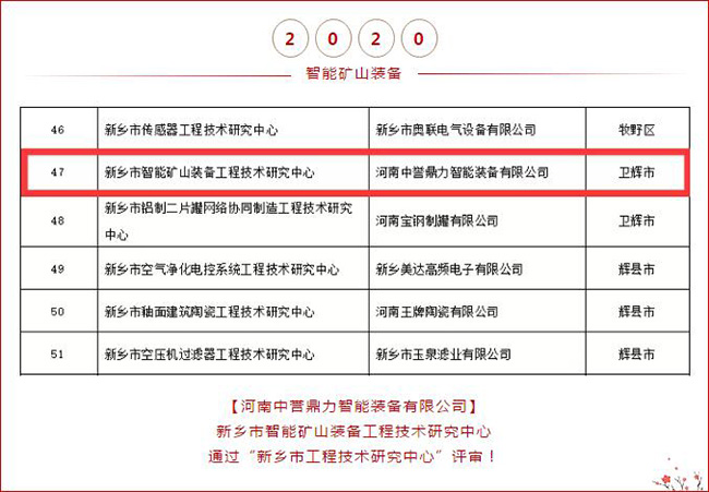 根據(jù)《新鄉(xiāng)市市級(jí)工程技術(shù)研究中心管理暫行辦法》(新科計(jì)〔2016〕33號(hào))的有關(guān)規(guī)定,市科技局組織對(duì)申報(bào)的新鄉(xiāng)市工程技術(shù)研究中心開(kāi)展了會(huì)議評(píng)審和現(xiàn)場(chǎng)審核。日前,經(jīng)局長(zhǎng)辦公會(huì)研究決定,及為期7天的公示,認(rèn)定86家工程技術(shù)研究中心為2020年度新鄉(xiāng)市工程技術(shù)研究中心。河南中譽(yù)鼎力智能裝備有限公司建設(shè)的“新鄉(xiāng)市智能礦山裝備工程技術(shù)研究中心”入選!這也是中譽(yù)鼎力次進(jìn)入新鄉(xiāng)市工程技術(shù)研究中心名單!