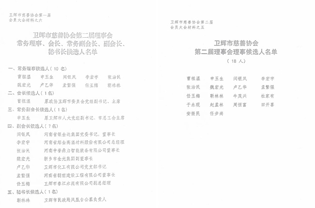 衛(wèi)輝市慈善協(xié)會,是由熱心慈善事業(yè)的中公民、依法成立的企事業(yè)單位、社會團(tuán)體、民辦非企業(yè)單位及其它社會組織自愿參加的市性非營利公益慈善社會組織。理事會理事主要由愛心企業(yè)、社會組織的代表和社會人士、慈善志愿者構(gòu)成,經(jīng)會員代表大會選舉產(chǎn)生;會長、副會長、秘書長、常務(wù)理事由理事會選舉產(chǎn)生。
