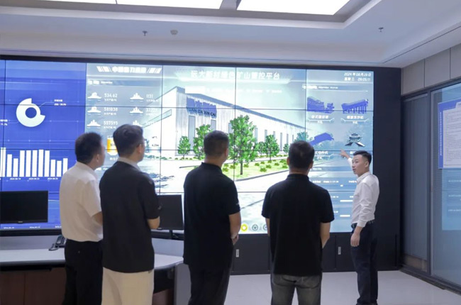 在中譽鼎力綠色建材大數(shù)據(jù)中心和智能化大廳,王順凡、杜凡新先介紹了中譽鼎力的企業(yè)情況、產(chǎn)品研發(fā)、智能礦山、建材業(yè)務等內(nèi)容。參觀團先后了解了中譽鼎力在智能礦山管理、建材線上交易、綠色建材產(chǎn)業(yè)園等方面的成果和應用。