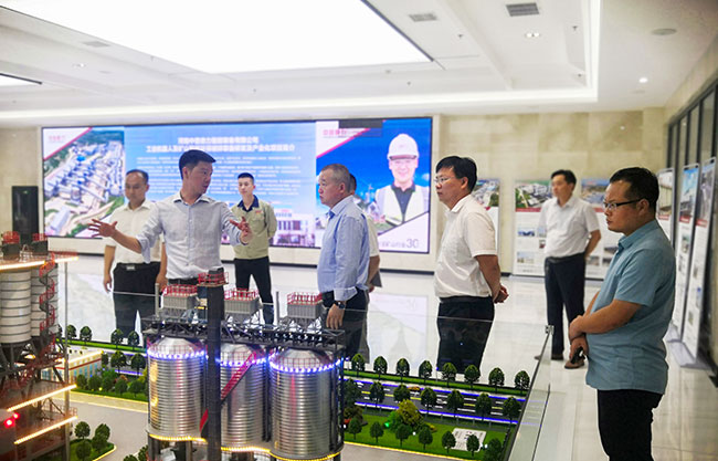 隨后,考察團(tuán)來(lái)到中譽(yù)鼎力智能化展示,實(shí)地參觀了中譽(yù)鼎力多位一體循環(huán)建材產(chǎn)業(yè)園項(xiàng)目沙盤(pán),并觀看了公司相關(guān)介紹。
