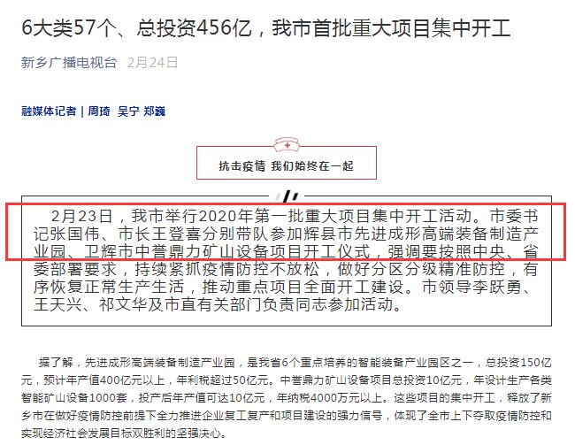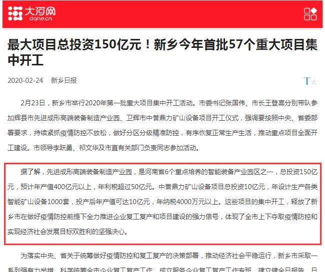 報道鏈接:【資訊】投資10億,衛(wèi)輝市中譽鼎力礦山設備項目正式開工!