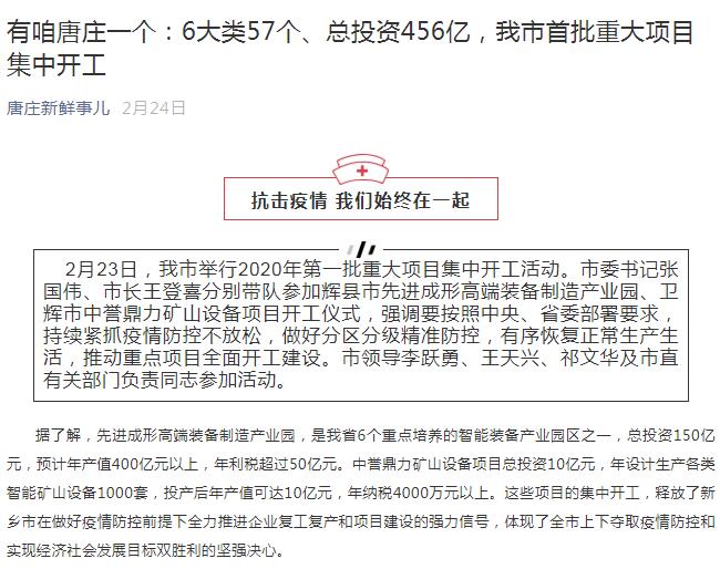 報道鏈接:有咱唐莊一個:6大類57個、總投資456億,我市批重大項目集中開工