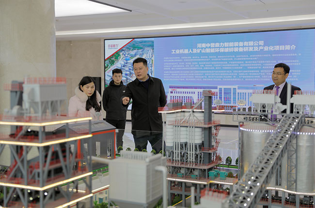 隨后,考察導走進位于衛(wèi)輝市產業(yè)集聚區(qū)的河南中譽鼎力智能裝備有限公司,先后參觀了公司的礦山管理云數據中心、多媒體展示中心等,對中譽鼎力的做事理念、主營業(yè)務及榮譽資質等有了進一步了解。