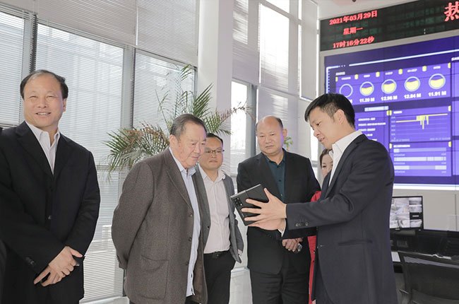 張鐵崗院士一行先來到由中譽鼎力投資建設的多位一體循環(huán)建材產(chǎn)業(yè)園項目實踐基地——衛(wèi)輝市藍天環(huán)保材料有限公司“四位一體”大型建材項目調研,深入了解建材生產(chǎn)智能管理模式。