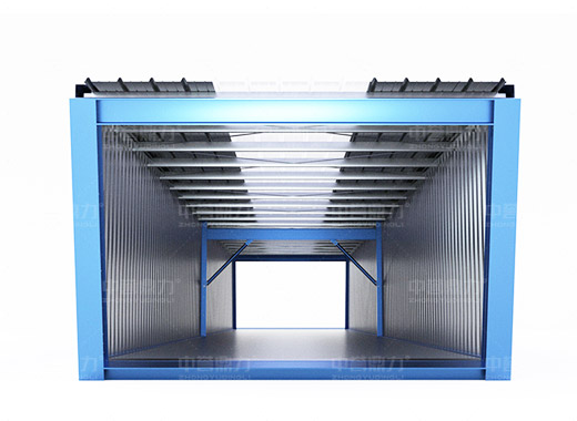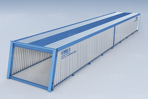 內(nèi)部設計有電纜橋架固定位置,現(xiàn)場吊裝前可直接將頂部密封后組裝完成,整體吊裝