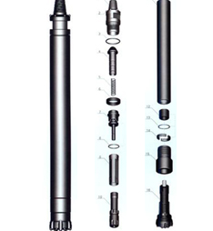 活塞、內(nèi)缸、配氣座、逆止閥和鉆頭附件等安裝在細長的外缸內(nèi),外缸上端裝帶扳手口和聯(lián)接螺紋的上接頭,下端裝有螺紋連接的卡釬套。