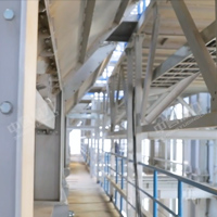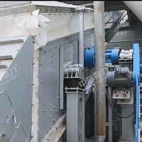 整個(gè)組裝式篩分結(jié)構(gòu)由振動(dòng)篩主機(jī)、振動(dòng)篩框架、樓體鋼構(gòu)、振動(dòng)篩附件、電動(dòng)提升機(jī)構(gòu)、巡檢廊道等部分組成,振動(dòng)篩由振動(dòng)篩框架支撐,振動(dòng)篩附件由樓體鋼構(gòu)支撐,樓體鋼構(gòu)和振動(dòng)篩附件不參與振動(dòng),使樓體鋼構(gòu)的強(qiáng)度和穩(wěn)定性更高。