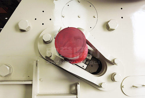 液壓保險裝置可以提高設(shè)備運行的性和穩(wěn)定性,而且當(dāng)破碎腔內(nèi)落入大塊非破碎物料時,設(shè)備發(fā)出故障提醒,停機后調(diào)節(jié)油缸位置,使其后退,然后使得大塊物料從排料口落下,再重新開機破碎;