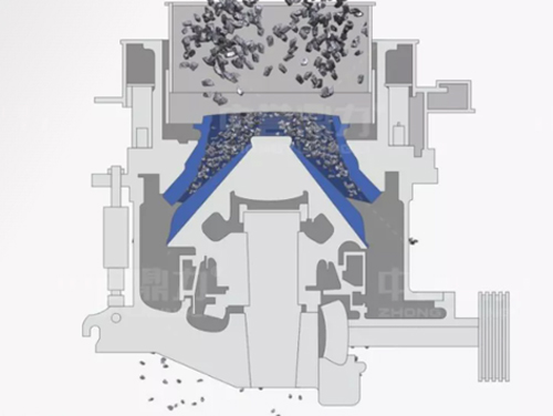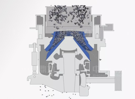多缸液壓圓錐破碎機(jī)結(jié)構(gòu)簡(jiǎn)單,由電機(jī)、傳動(dòng)軸、齒輪、偏心套、定錐、動(dòng)錐等部分組成,采用擠壓式的工作原理,電機(jī)通過(guò)三角帶、傳動(dòng)軸、傘齒輪副帶動(dòng)偏心套旋轉(zhuǎn),動(dòng)錐在偏心套的帶動(dòng)下做旋擺運(yùn)動(dòng)。定錐和動(dòng)錐時(shí)而靠近、時(shí)而偏離,360度對(duì)破碎腔內(nèi)的物料擠壓、搓攆破碎,破碎后的物料從下方排料口排出機(jī)腔。