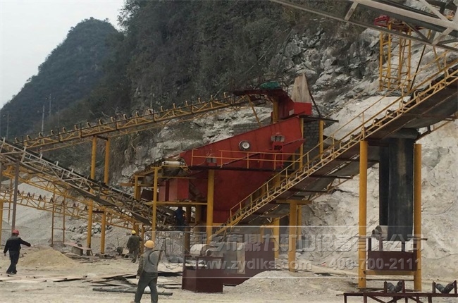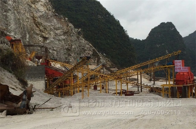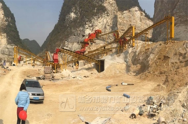 上圖為時產(chǎn)800噸碎石生產(chǎn)線的生產(chǎn)現(xiàn)場,依托山勢將山石進行破碎,不僅利用了當?shù)氐馁Y源,而且減少了物料輸送過程中的能源消耗,生產(chǎn)效率大大提高。