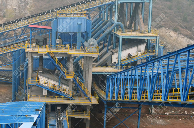 經(jīng)過(guò)再次破碎的物料經(jīng)過(guò)振動(dòng)篩再次篩分出不同粒度的成品料;