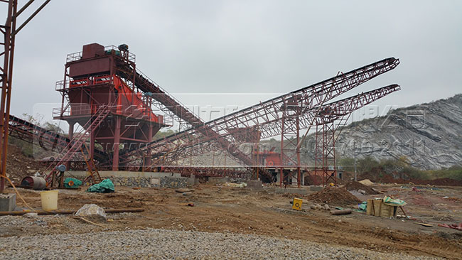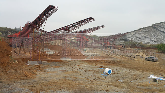 時產500噸石灰石砂石骨料生產線:PCZ1615重型錘式破碎機、ZGC1550振動給料機、2YK2460振動篩*2臺等等