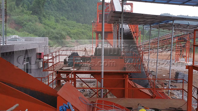 日產(chǎn)6000-8000噸石子生產(chǎn)線配套設備:PCZ1620重型錘式破碎機、ZG2028振動給料機、3YKZ2070振動篩*2臺等等