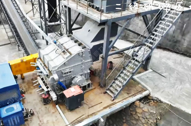 · 粗碎后物料經(jīng)皮帶輸送至反擊破碎機二次破碎。