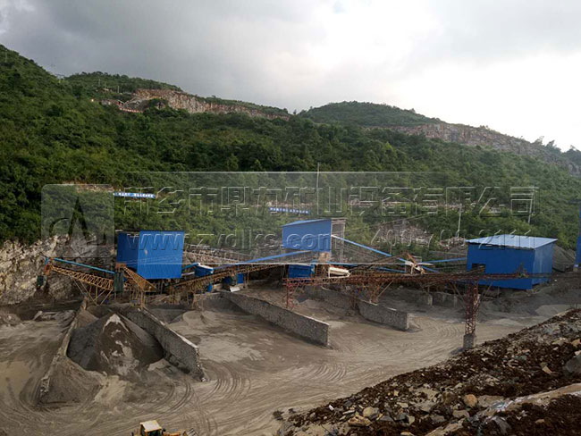 針對(duì)這種情況我們公司為其設(shè)計(jì)改進(jìn)流程,這條時(shí)產(chǎn)700噸大型石料生產(chǎn)線采用頭破—除泥破碎—整形破碎—制砂的破碎工藝,并且及時(shí)根據(jù)市場(chǎng)的需要來(lái)調(diào)整對(duì)應(yīng)的出料粒度,生產(chǎn)的成品料含泥含量低、粒形均勻。