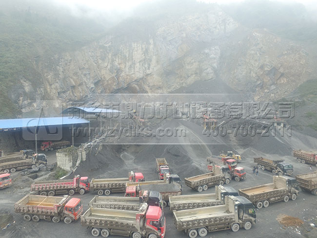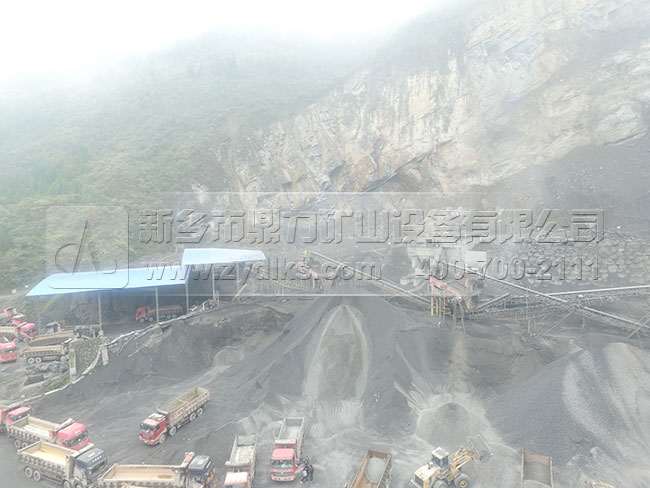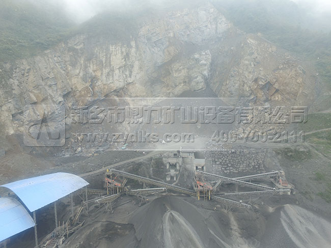 此條石子生產(chǎn)線主要是將當?shù)氐氖沂、青石破碎成我們需要的石子粒度。由于石灰石和青石的硬度低,腐蝕小,容易破碎,我們聽取了廠家建議,采用重錘破(PCZ1615型號)進行石料粗碎兼整形,它每小時的產(chǎn)量在500-800噸之間,過了我們的預期。與采用顎式破碎機相比,重錘破更加節(jié)能,粒型方面也更理想。