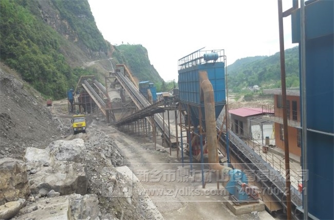 從日產5000噸碎石生產線現場可以看到,該項目借助山勢建設,配置的設備包括錘式破碎機破碎機、振動篩、給料機、皮帶輸送機等?蛻糸_采的原料為當地的石灰石,經過這一套設備的加工后,大塊石灰石變成了規(guī)格各異的成品石料。這些產品質量合格,后期銷售無憂。