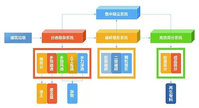 根據(jù)裝修垃圾、拆遷廢料、工程渣土和建筑泥漿等建筑垃圾分類進(jìn)行相對(duì)應(yīng)的分揀處理;