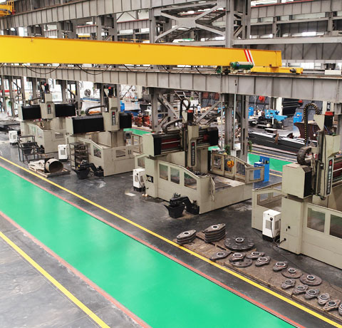 采用42CrMo材質(zhì)進(jìn)行粗車,調(diào)質(zhì)處理增加強(qiáng)度和韌性,精車后在龍門鏜銑床上銑出與錘盤接觸的方形配合面,與傳統(tǒng)轉(zhuǎn)子相比,使用壽命提高大大提高。