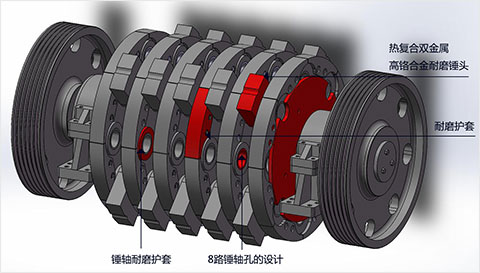 錘軸孔上設(shè)計(jì)護(hù)套、轉(zhuǎn)子盤上設(shè)計(jì)護(hù)圈,性高,無需每天更換,哪塊有損壞更換哪塊,增加了開機(jī)時(shí)間