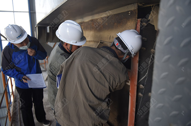 售后服務(wù)團隊來到時產(chǎn)1000噸環(huán)保智能砂石骨料生產(chǎn)線篩分、制砂、除塵等現(xiàn)場,詳細了解并認(rèn)真檢查設(shè)備使用情況,向高總提出了維護保養(yǎng)建議。