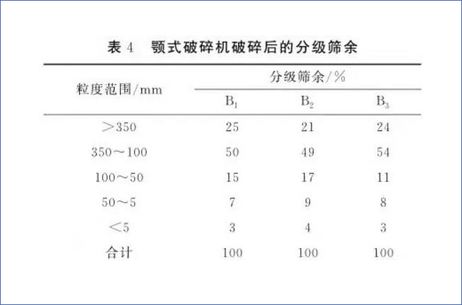 B破碎后成品料粒度比例: